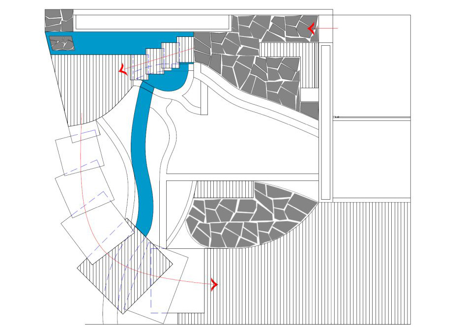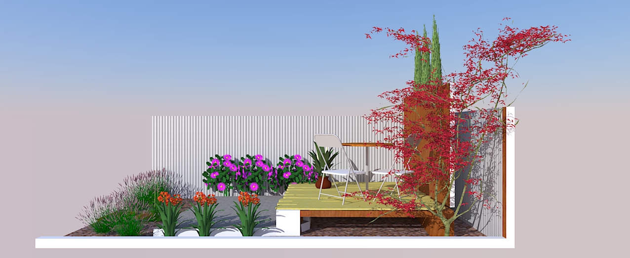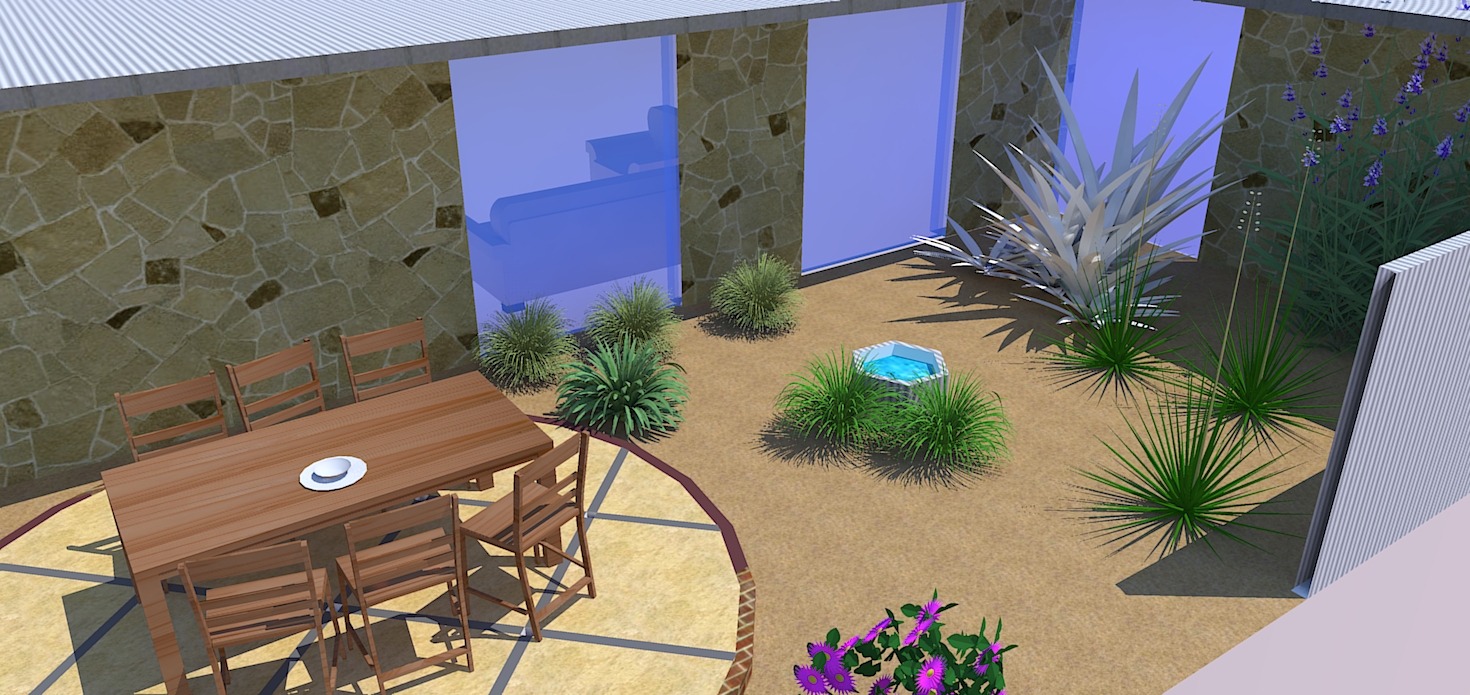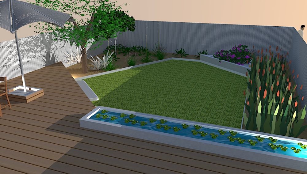 Assign a Z coordinate to entities if required. In the example above, the yellow deck was set at 300, the grey paved area 100 and the white decoration 105.