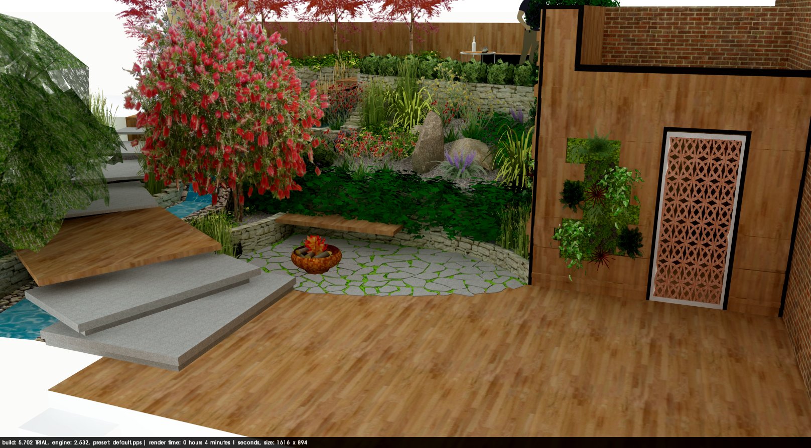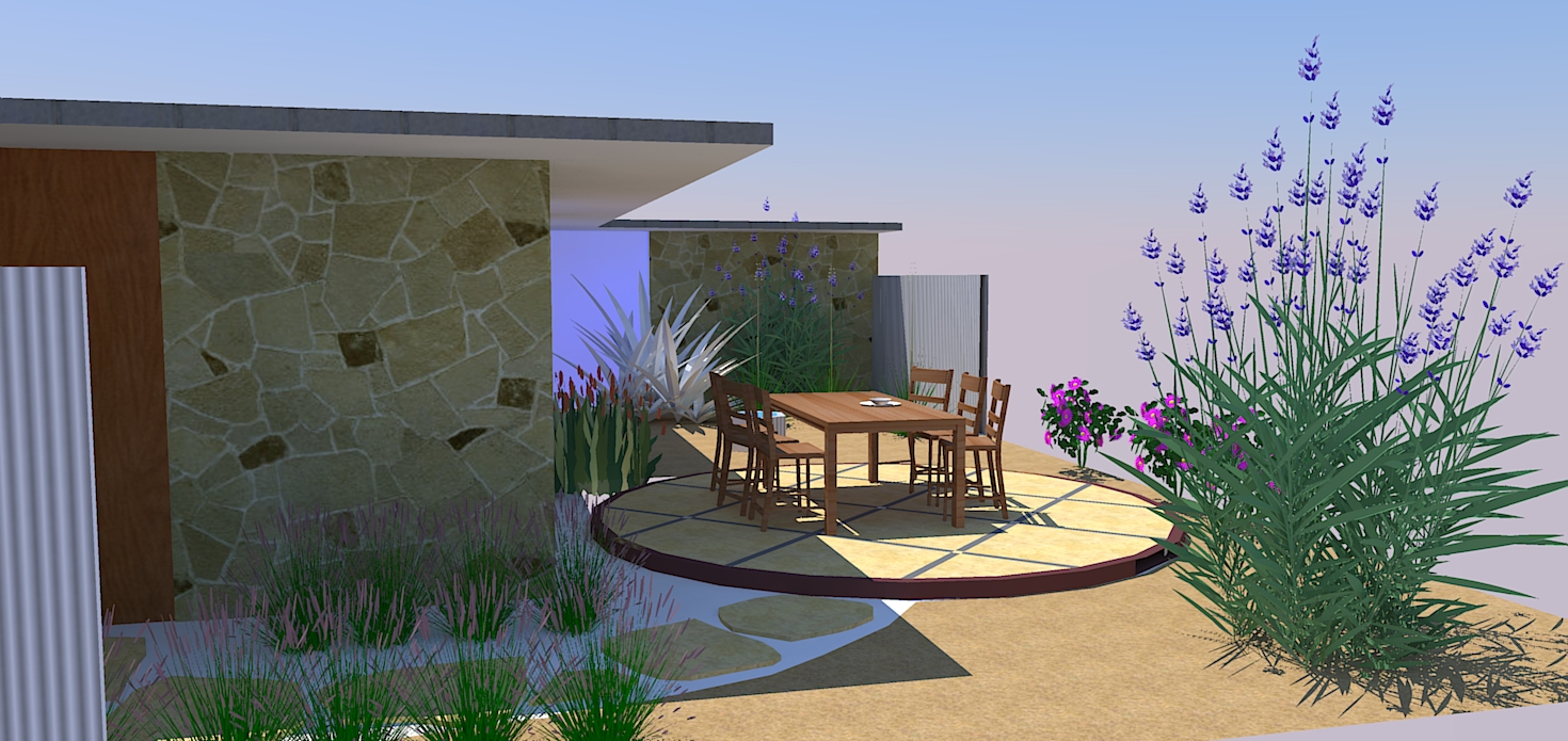Rather than hand sketch, many designers export gCADPlus geometry to other software applications to build a computer-generated 3D representation of the design. Here are some examples of 3D landscape models generated in SketchUp from 2D designs created using gCADPlus.